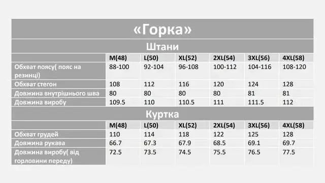 Таблиця Розмірів