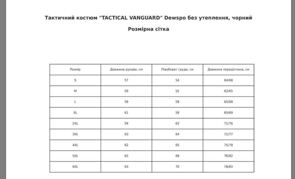 Таблиця Розмірів